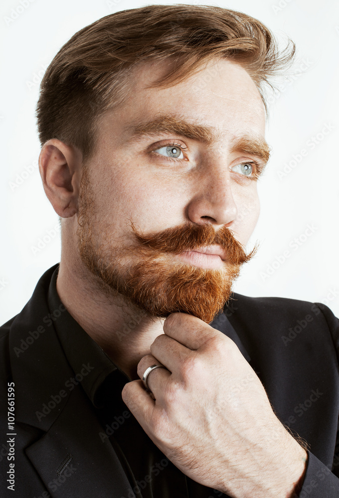 Young Red Hair Man With Beard And Mustache In Black Suit On White Background Stock Photo Adobe Stock